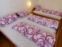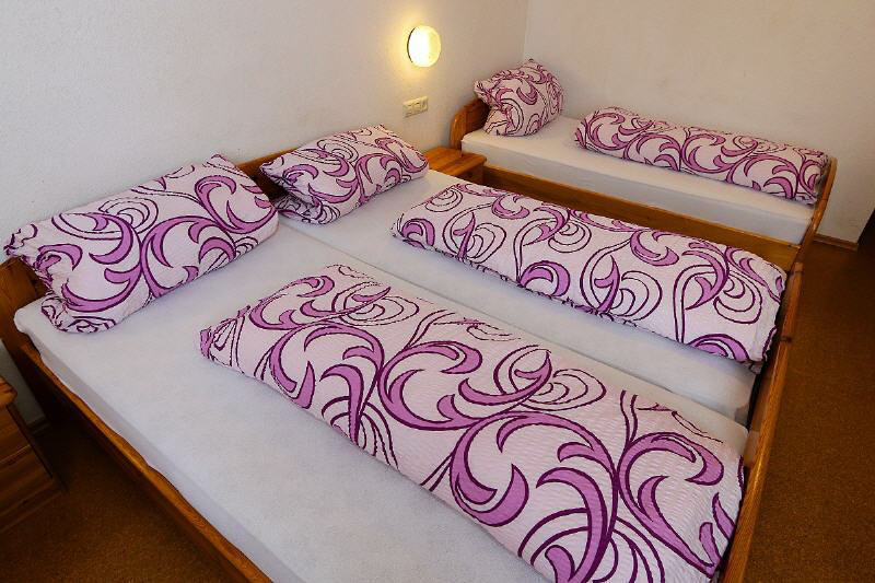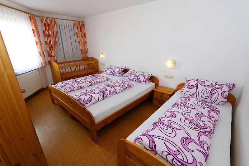 Das Schlafzimmer hat ein Doppel- und Einzelbett.