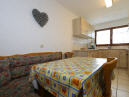 Die Wohnung ist komplett mit Fliesen und Korkboden ausgestattet.